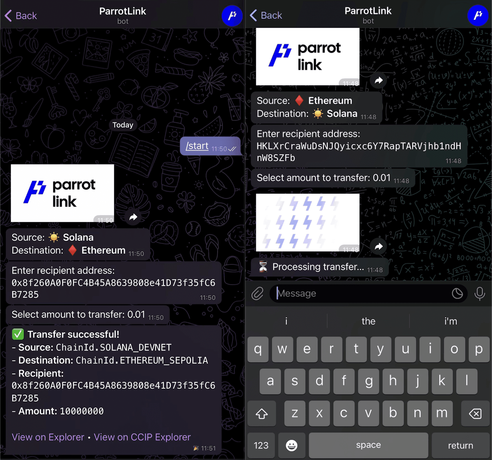Parrot Link sits at the center of your multi-chain universe. Built on Chainlink CCIP, our lambda-powered bridge delivers bidirectional flows of capital and community between Solana, Ethereum, Berachain, and Avalanche—no forks, no middlemen, no friction.